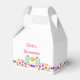 Fiesta mexicana de flores favorece la caja - personalizada con tu nombre, ocasión u otro texto personalizado. Este diseño colorido como bonito de arte folclórico floridas en rojo púrpura y amarillo sobre un fondo blanco con letras de escritura de pincel rosa.
