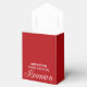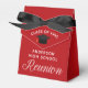 Esta moderna caja de favores del partido de la reunión de personalizados de secundaria muestra el nombre de los alumnos de secundaria con escritura blanca en un fondo rojo para una celebración número 10, 20 o 30.