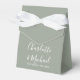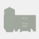 Elegante caja de favores de boda con elegantes nombres de escritura de firma y fecha especial establecida en tipografía moderna sobre un fondo verde sabio. Puedes personalizar con tu propio mensaje de agradecimiento debajo de la tapa. ¡Una forma perfecta de agradecerles a sus huéspedes! Diseñado por Thisisnotme©