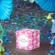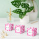 Patrón de fleur de lys blanco y rosa caliente caja de favores. Patrón de flores blancas de lis sobre fondo rosado caliente.