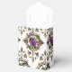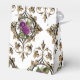 Caja de regalo con estampado de rosas antiguas ornamentales en acentos de púrpura, dorado y negro.