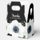 Las grandes cajas de 4" x 2,5" x 5" de color gable con un estilo preferente presentan una elegante acuarela con flores de anémona blancas y negras y hojas que se envuelven alrededor de las cajas negras con tu mensaje de agradecimiento personal en un lado y tus nombres en el otro. Tamaño más pequeño más elementos coincidentes en nuestra colección.
