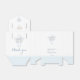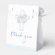 This design features a watercolor illustration of blue white flowers, cross and angel. You can adjust text according to your requirements.. Texts "thank you" is written in a script font.