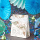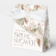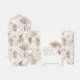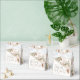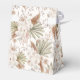 Este diseño presenta floral bohemia neutra con hojas de palma, plumas y un audaz tipo de letra retro.