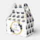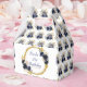 Hermosa caja de favores para fiestas de cumpleaños con un marco purpurina azul marino y de imitación dorado con arreglos florales. Las palabras se pueden cambiar para adaptarlas a sus propios detalles o requisitos