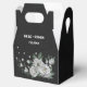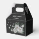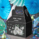 Caja de favores de boda única con flores blancas románticas y hojas verdes sobre fondo negro. PARA OBTENER MÁS PRODUCTOS COINCIDENTES, haga clic en la colección superior o póngase en contacto conmigo.