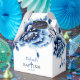Chino de la floral azul Chinoiserie caja de favores del bautismo. Elegante caja de bienvenida de estilo floral Chinoiserie Baptism con un diseño de inspiración porcelana. peonías elegantes en estilo tradicional de tinta en una rica paleta de cobalto e índigo, acentuadas por resquicios blancos crudos. Debajo del esquema de acuarela floral hay espacio para tu texto.