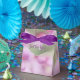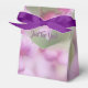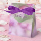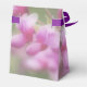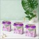 Caja de tratamiento estilo carpa con cinta morada, texto de 'Just For You' e imagen de la foto que tomé de flores de primavera rojas.