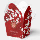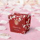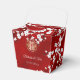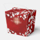 Esta caja de favores de boda china cuenta con hermosas ramas de flores orientales blancas, mariposas lindas y un símbolo de doble felicidad dorado en un fondo rojo brillante. Hermosa caja roja blanca y dorada con los nombres de los novios en la parte delantera y trasera. Así que esta caja está diseñada para dársela a la pareja.