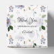 Las elegantes flores y hojas moradas y de lavanda cubren estas cajas de 2" de color cuadrado que muestran el mensaje de agradecimiento en la parte superior. Ideal para fiestas de cumpleaños, duchas de novias, duchas para bebés o cualquier ocasión especial. Papel tisular y más artículos en nuestra tienda.
