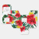 Esta caja de cambio personalizado presenta una temática de playa tropical o boda insular. El fondo es un blanco sencillo y elegante con flores de colores tropicales hawaianas. La caja está cubierta por ramos florales con hojas de palma, hibiscos y flores frangipanas.