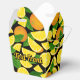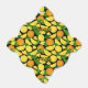 rodajas y hojas naranjas. Patrón sin foco. Color de fondo personalizado. Texto personalizado en ambos lados.