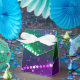 Luminoso fondo violeta y verde con un confeti brillante. Festival Mardi Gras.