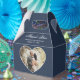 Personalizado boda azul marino foto de agradecimiento caja de favores con un marco fotográfico en forma de corazón.