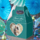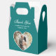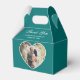 Personalizado boda verde azulado foto de agradecimiento caja de favores con un marco fotográfico en forma de corazón.