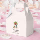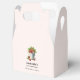 Una minúscula caja de favores con un gráfico veraniego de un montón de fresas desbordando en un cubo.