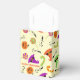Esta es una divertida caja de favores de Halloween con dulces, calabazas y gorras de brujas en un fondo amarillo claro. El cuadro de favor se puede personalizar cambiando el nombre del cuadro y el texto. Se puede dar en fiestas o eventos corporativos.