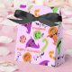 Esta es una divertida caja de favores de Halloween con dulces, calabazas y gorras de brujas en un fondo morado claro. El cuadro de favor se puede personalizar cambiando el nombre del cuadro y el texto. Se puede dar en fiestas o eventos corporativos.