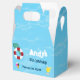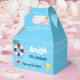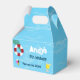 La caja de favoritos para la fiesta de cumpleaños tiene el mismo diseño que la invitación, tarjeta de agradecimiento, y otros productos cuentan con fondo de piscina de agua con productos de natación. #fun #poolparty #Enjoy #waterpool #blue #white #favorbox #cumpleaños #traje de baño #gogglelens #flipflops #sunblock