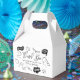 Caja de favores divertidos para regalar en tu fiesta de graduación con el texto que dice "gracias por celebrar conmigo" con garabatos extravagantes dibujados a mano.