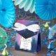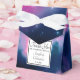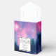 Cajas favoritas de bodas con un hermoso diseño abstracto en rosa y azul. Estrellas blancas salpicadas a través de esta imagen del cosmos. Trippy y fresco. Un cuadrado blanco con un borde negro sobre la parte superior con el texto dentro.