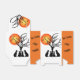 Este diseño adorable es perfecto para los amantes del gato y de Halloween. Este diseño digital presenta las siluetas de cuatro gatos alrededor de un árbol. En la parte superior, la luna brilla de forma brillante, con tres murciélagos diminutos, a lo lejos. Los paneles laterales son naranjas de Halloween y el texto dice "No trucos solamente trata". Esta caja de favores tiene una cinta negra para atar cuidadosamente tus golosinas.