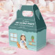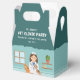 The illustration is placed near the bottom of the box against a vibrant teal background. The top area provides space to personalize the event theme and add a thank you message, making each box a special treat for your guests.