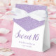 Purpurina Faux de glamur púrpura y Sparkle Elegant Sweet 16 Gift Box. Esta moderna y elegante caja de regalo de color violeta violeta se puede personalizar para incluir tu nombre y hace una gran caja dulce de 16 chicas de cumpleaños. Perfecto para una princesa dulce dieciséis, perfecto para ella, la modistonista que ama el patrón moderno y el brillo. El diseño de oro de lujo está a la moda para los cumpleaños de los adolescentes.