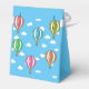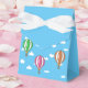 Colorida caja de Favor de Globos de Aire Caliente. El cielo azul claro con nubes pequeñas y 6 globos de aire caliente de distintos colores es un regalo perfecto para cualquiera que le guste estar en el aire y viajar por el cielo.