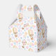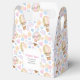 Pequeña caja de favores con un patrón tierno y caprichoso. Globos de aire caliente y bonitas nubes con caras entre estrellas y corazones y globos. Los suaves colores pastel componen este adorable diseño. Un cuadrado blanco sobre la parte superior con el texto dentro.