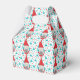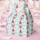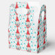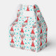 Muy divertido y lindo para esta temporada navideña. Este diseño presenta un divertido gnomo con pelo gris en dos trenzas atadas con cintas rojas, en un alto gorra rojo contra un fondo de árboles de Navidad en tonos turquesa y bolas de navidades rojos.