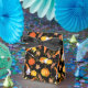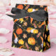 Esta es una divertida caja de favores de la fiesta con gnomos, calabazas y hojas en colores de otoño sobre un fondo negro. Ideal para Acción de Gracias o cualquier otro fiesta que esté teniendo en la temporada de otoño.