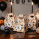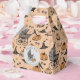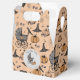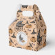 Esta elegante y artística caja de favoritos de los eventos Personalizados de Halloween presenta ilustraciones dibujados a mano con tinta negra de Nathalie Portet. El nombre, evento y fecha personalizados se imprimen en ambos lados. Con un fondo de naranja pastel, imágenes de vagones de bebé victorianos vintage, gorras de brujas, cuervos negros, calabazas, telarañas, calderos burbujeantes y pequeños hongos moteados adornan esta caja de favores. Un marco de círculo muestra tu saludo personalizado ("Gracias" se puede cambiar a "Feliz Halloween, Felicidades, Feliz Primer Cumpleaños", etc.) Nombre y fecha. Ideal para las duchas de bebé de Halloween, 1ª Halloween, 1ª Cumpleaños, Octubre Bebé, Nueva Madre, etc.