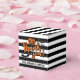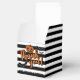 Pequeña ducha de bebé gracias a las cajas impresas con rayas de gótico en blanco y negro, y un diseño con temática de Halloween con un audaz guion naranja, una calabaza tallada sonriendo alegremente a los invitados de la ducha de bebé, y lindos murciélagos pequeños. Rótulo con tu nombre y el nombre o apodo de tu pequeño novio que casi debe. El texto negro es personalizable y las cajas de favores funcionan igualmente bien para cualquier otro tipo de evento temático de Halloween, como una ducha de novia de Halloween, un boda de Halloween, una fiesta de cumpleaños de Halloween y un fiesta de disfraces de Halloween.