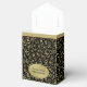 Personalice fácilmente el texto de este tema de la fiesta de cumpleaños 90 de oro y negro con las plantillas suministradas. Este diseño en el fondo es un resumen de oro y negro del número noventa (90) repetido en tamaños y ángulos diversos en una tipografía completa. Hay una solapa de oro en la parte superior y una placa ovalada en la parte central para tu texto. Utilice las plantillas fáciles para agregar sus propias palabras, nombre inicial o monograma. Una gran idea para los favores de tu fiesta de cumpleaños número 90.