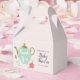 ¡Tire una fabulosa ducha de bebé con esta caja de bienvenida dedicada a la ducha de té! Ilustracion de un recipiente de té verde menta con el interior de la olla que dice "Gracias". También hay flores de color rosa coral. Personalizar este producto agregando el nombre y la fecha de evento de la futura mamita.