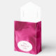 Diga "Gracias" por venir a su fiesta de cumpleaños con favores de fiesta. El fondo es el arte digital creado para parecerse a la tela texturada metálica de fuchsia. Hay una placa blanca en la parte delantera con el texto "Desde la Chica de cumpleaños Caitlyn" y una plantilla de texto para facilitar su cambio a sus propias palabras, nombre, iniciales o monograma. También hay una plantilla para la palabra "Gracias" en la solapa de la caja. ¡Estas pequeñas y lindas cajas son siempre un éxito! Son perfectas para tarjetas de regalo, dulces y otros pequeños baratijas.
