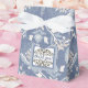 Una Caja Francesa De Favor De Tiendas En Azul Con Un Diseño De Damasco Floral Con Un Centro De Gracias