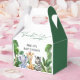 ¡Envíe a sus invitados a casa con una pequeña magia de la jungla! Estas adorables cajas de favores cuentan con un encantador elefante, jirafa y cebra rodeados de vegetación tropical, con un sincero mensaje de "Gracias". Perfecto para pequeñas golosinas, caramelos o bizcochos para que su ducha de bebé sea inolvidable.