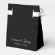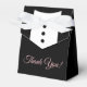 Este divertido favor de boda o caja de regalo está diseñado para que parezca un esmoquin. El texto dice Gracias en la parte delantera con los nombres de la pareja boda y la fecha boda en la parte trasera. Todos los campos son personalizable. Máquina de agradecimiento perfecta para los padrinos, el mejor hombre, el padre de la novia, el portador del anillo o cualquier otro invitado boda especial que aprecie una caja de favores más masculina.