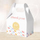 Celebre su gran día con estilo con nuestras coloridas cajas retro de alegres caras de fiesta a cuadros, con dameros pastel ondulado y una cara feliz totalmente estelar.