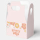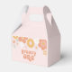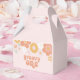 Groovy de inspiración retro Un primer cumpleaños cajas de favores con flores de estilo de los años 70 y fuentes y colores boho.