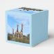 Celebrate a special second birthday with this “Growing Tall Safari Wonder” design. The gentle giraffe family photo appears on the top and back, while the soft sky‑blue sides create a bright, nature‑inspired look. A sweet safari style that adds charm and cohesion to your Growing Tall at 2 party theme.