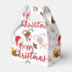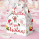 Un hermoso patrón de Navidades con un guión de caligrafía de Feliz Navidad, un gorra de Navidades, velas, cerezas de invierno y latas de dulces de Navidad con colores completos y dos tonos de reflexión. Felices fiestas!