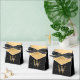 Caja de regalo personalizada con elegante y moderno diseño de monograma de nombre con tipografía de letra manuscrita y foil dorado. Este diseño presenta su primer nombre en una bonita tipografía de letra manuscrita con cola de cisne (o caligrafía) con monograma inicial, sobre un bloque de foil de color dorado falso en fondo negro. Estas cajas de regalo femeninas y elegantes son ideales para regalar, obsequios para invitados y golosinas durante una próxima fiesta de cumpleaños, barbacoa, cumpleaños 16, baby shower, despedida de soltera, shower nupcial, recepción de boda, aniversario y más.