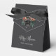 Un espeluznante diseño de moda de Halloween con un ilustracion tropical floral de cráneo coronado con flores de naranja y de la isla de Borgoña y vegetación selvática verde sobre un fondo negro humeante. Personalice esta exclusiva y elegante caja de favores de Halloween con dos líneas de texto personalizado.