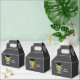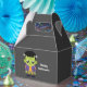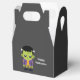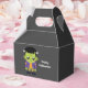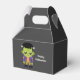 Pequeña caja de favores con una divertida imagen de Halloween con un monstruo Frankenstein verde.