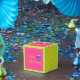 Caja Para Regalos Halloween de pequeños monstruos verdes rosados