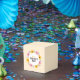 Happy Teacher's day favor box decorated with wild colorful flowers on beige background.