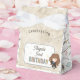 Bring a touch of magic to your celebration with this charming birthday favor box featuring a cute chibi-style illustration inspired by Hermione Granger from the Harry Potter series. The design showcases the clever young witch wearing her Gryffindor-themed robe and holding a wand, surrounded by colorful starburst accents. A parchment-style border frames the layout, and the back of the box is decorated with playful wizarding icons like books, cauldrons, Dobby, and other magical elements. Personalize with your child’s name and age to create a sweet and enchanting favor box perfect for any little wizard or witch.